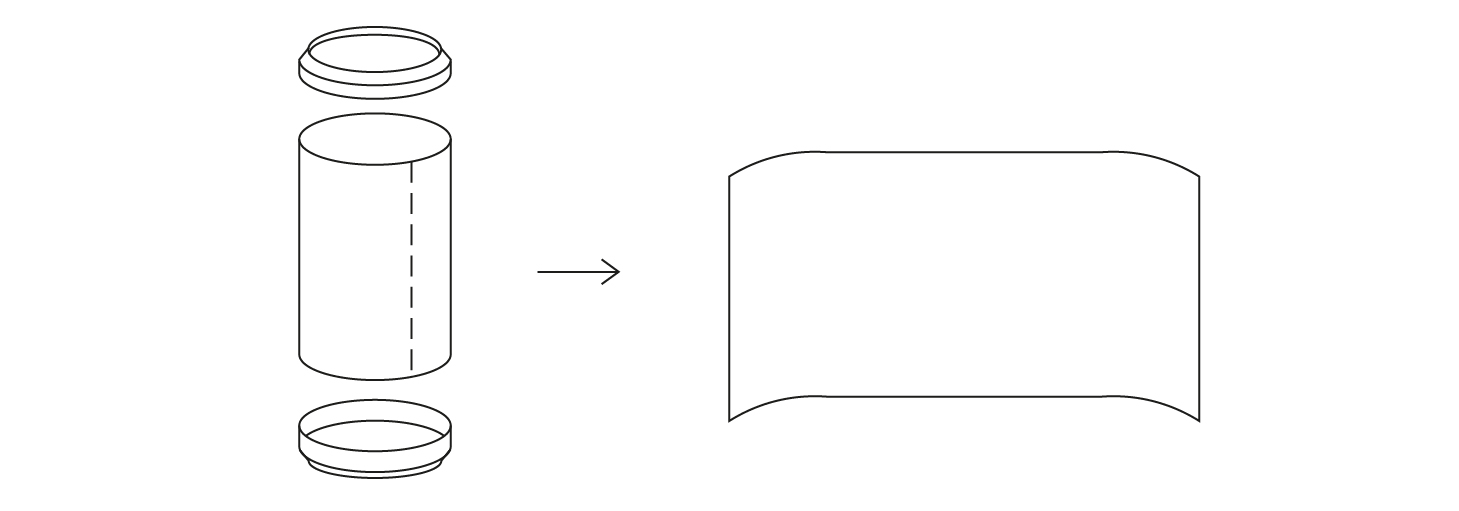 Découper un rectangle en longueur sur la hauteur de la cannette, assez grand pour avoir suffisamment de matière pour la suite.