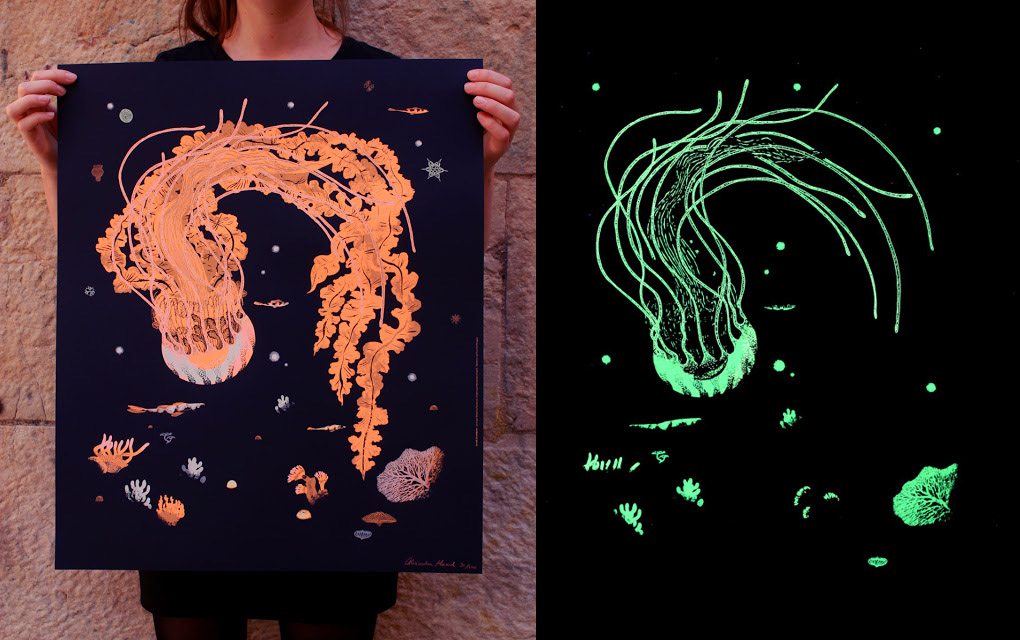 Le but est de suggérer le vivant (mon thème de mémoire étant la représentation du vivant) via les encres et leurs propriétés.